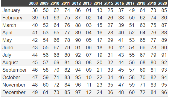 Tiếp đến ký tự thứ hai chính là năm sản xuất, ta có bảng dưới đây: