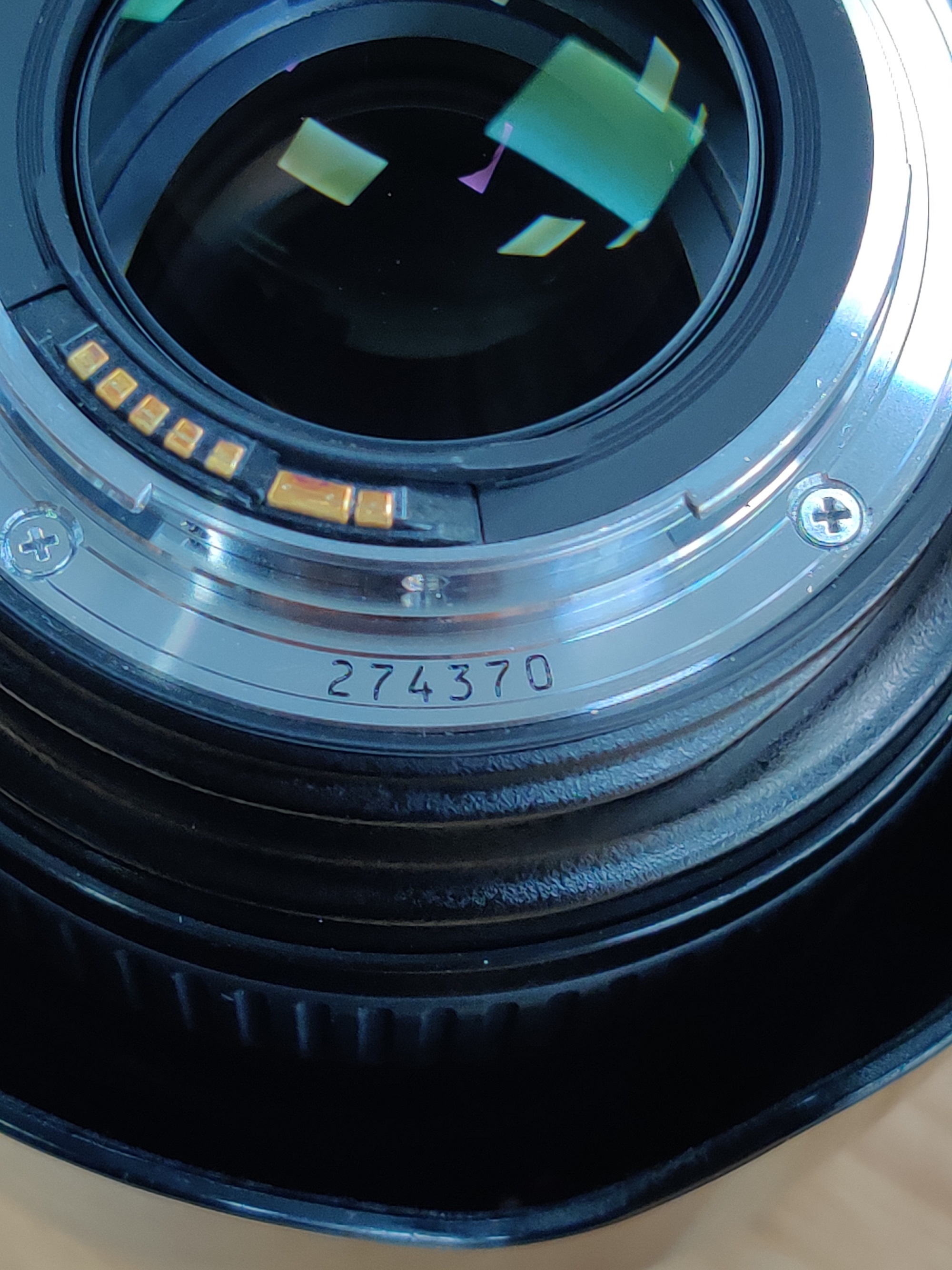 Đối với những chiếc ống đời cũ, bạn có thể tìm thấy đoạn mã này trên vành bên trong của ống kính (mặt chứa ngàm gắn vào máy ảnh). Với một số ống kính Canon cũ hơn thì được đóng dấu với một mã sản xuất gồm hai chữ cái và bốn số.