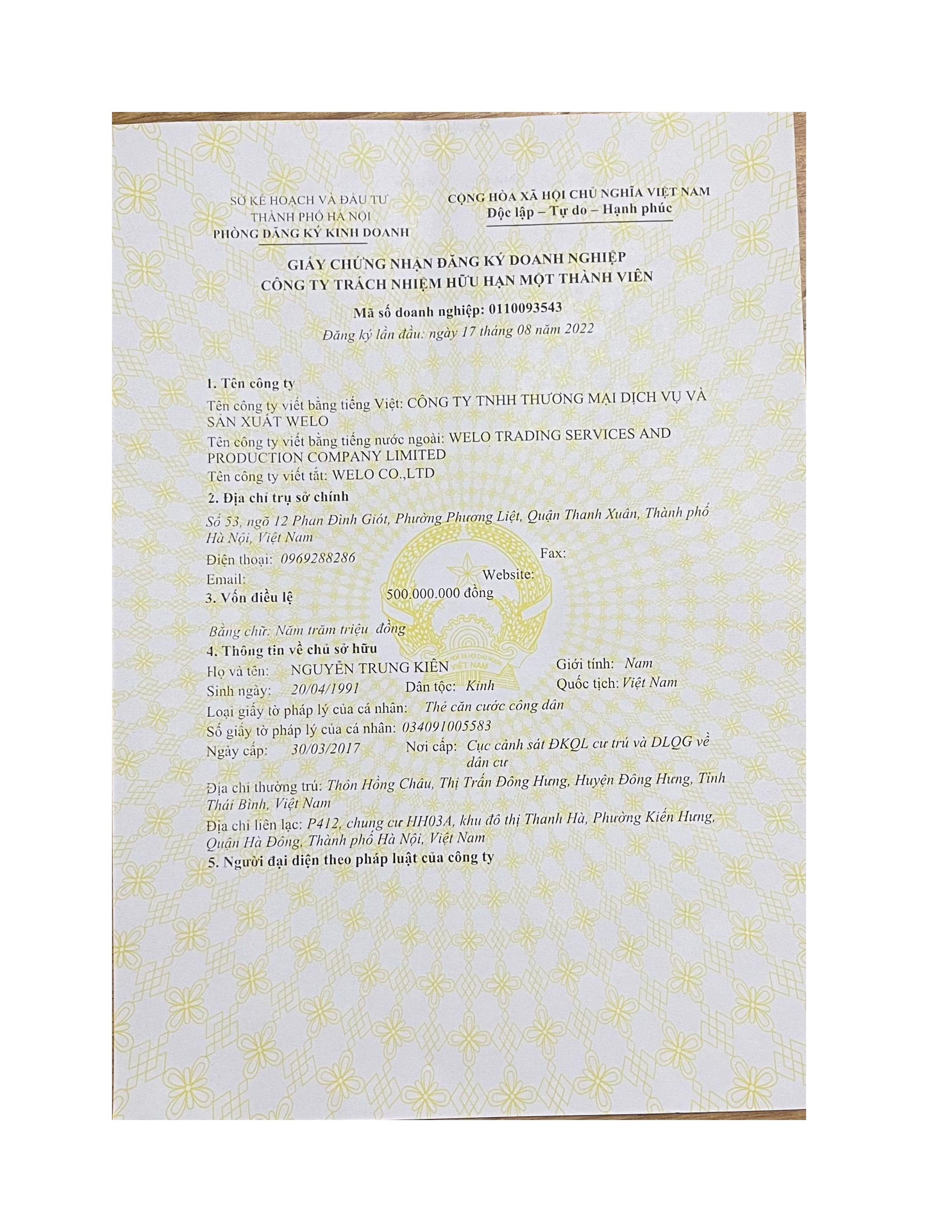 CÔNG TY TNHH THƯƠNG MẠI DỊCH VỤ VÀ SẢN XUẤT WELO