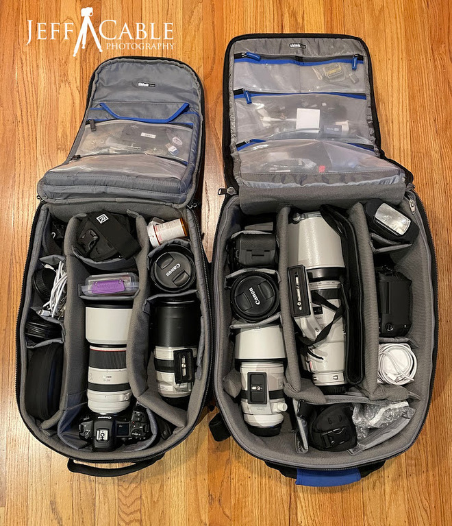 Dưới đây là danh sách "đồ nghề" của Jeff Cable, một nhiếp ảnh gia cho đoàn thể thao Mỹ: