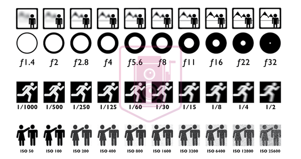 Aperture được đo bằng số F- ví dụ như f/2.8, f / 4, f/5.6, f / 8, f/22 vv Tăng hoặc giảm một bậc aperture sẽ gấp đôi hoặc giảm đi phân nửa kích thước của độ mở ống kính (và số lượng ánh sáng nhận được thông qua đó). Hãy ghi nhớ rằng tăng hay giảm shutter speed một bậc cũng sẽ nhân đôi hoặc giảm nửa lượng ánh sáng – điều này có nghĩa là nếu bạn tăng cái này và giảm cái kia cùng một lúc bạn sẽ cùng một lượng ánh sáng vào cảm biến – rất có ít để ghi nhớ).