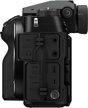 Về khe cắm thẻ nhớ và cổng kết nối, Fujifilm GFX 50S II bao gồm một cặp khe cắm thẻ SD UHS-II ở phía bên phải. Ở phía bên trái của máy ảnh cũng tích hợp đầu vào micrô và tai nghe, USB-C, HDMI (mini) và đầu vào điều khiển từ xa.