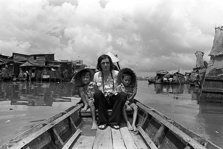Người phóng viên nước ngoài cùng hai em nhỏ trên con thuyền
