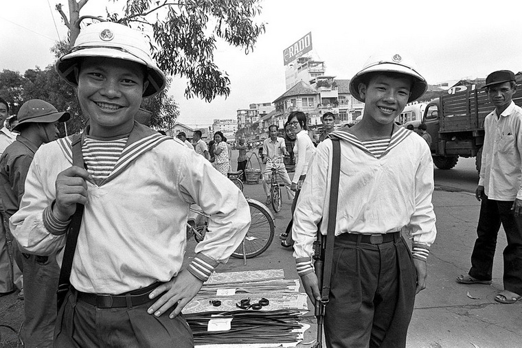 Nụ cười tươi rói làm xao xuyến biết bao ánh nhìn của hai chàng lính hải quân trên đường phố Sài Gòn vào tháng 5 năm 1975