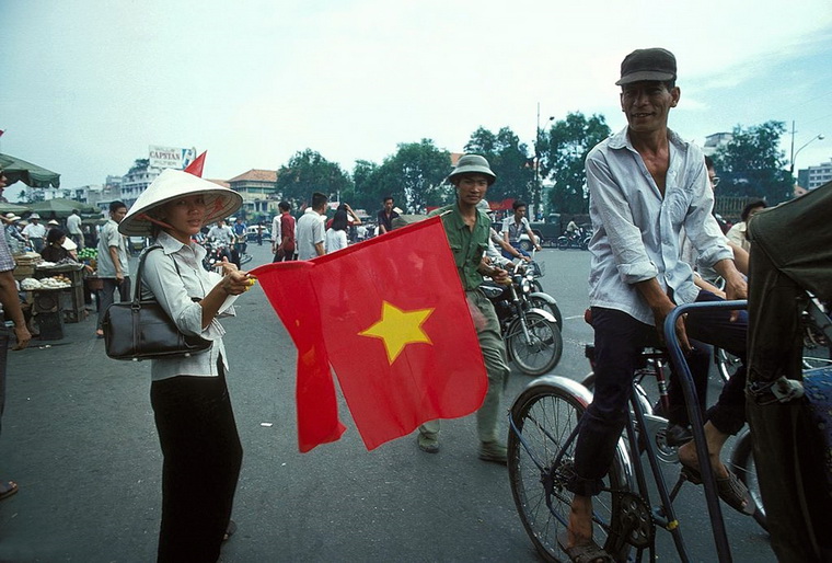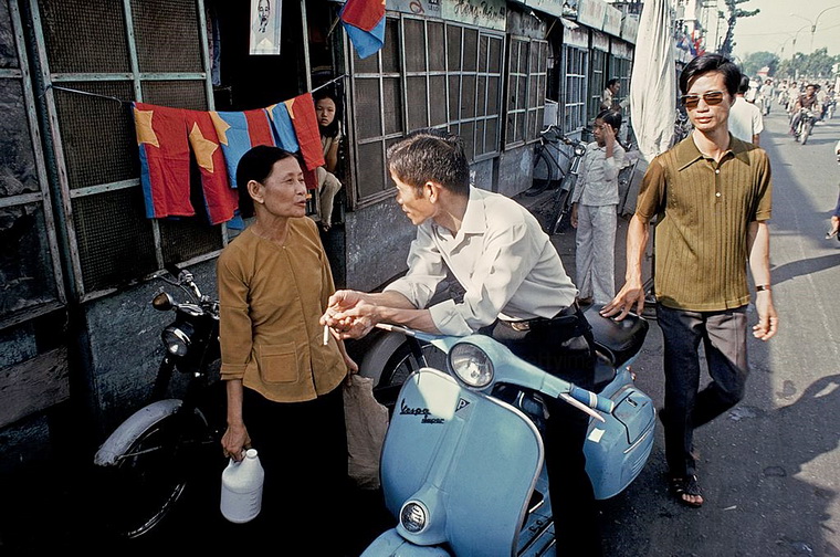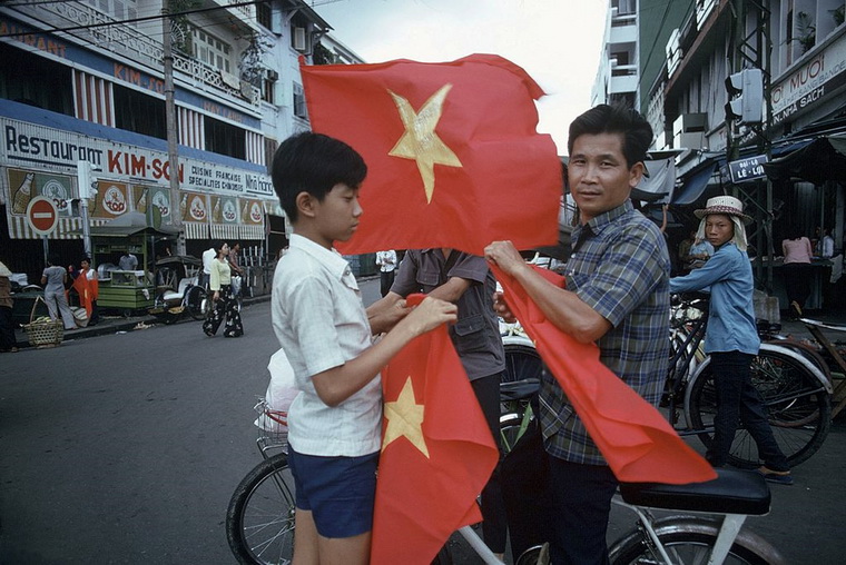 Sài Gòn vào tháng 5 năm 1975 – Những ʟá cờ Việt Nam của cнíɴн quyền mới được người dân bán trên khắp các tuyến đường phố