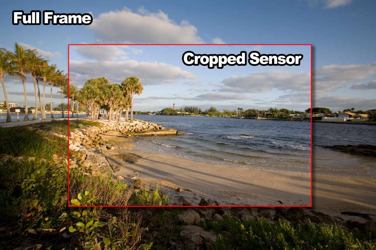 Nếu bạn sử dụng một máy ảnh có cảm biến crop như Nikon D5300, D7200, Canon 7D, 70D, Sony A6000,… thì khi chụp cùng một tiêu cự, ảnh sẽ có góc nhìn hẹp hơn so với khi chụp trên máy ảnh cảm biến full frame. Ví dụ, nếu bạn chụp một ống kính 35mm trên máy ảnh cảm biến crop sẽ cho góc nhìn tương tự như khi bạn chụp ống kính 50mm trên máy ảnh có cảm biến full frame ở cùng khoảng cách.